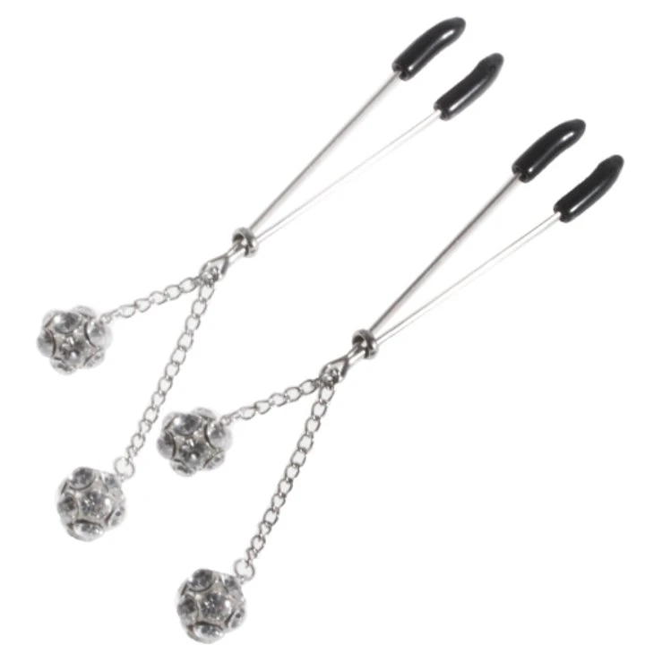 On the base of the clips are two hanging chains with stunning diamante covered baubles that will add some bling to your kinky fun.